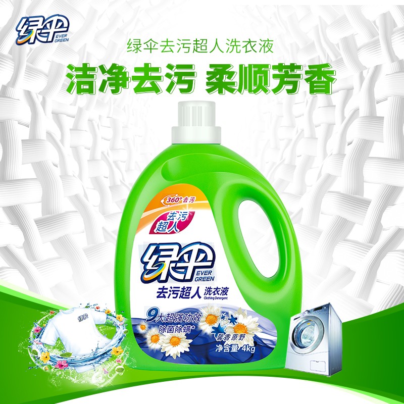 绿伞去污超人洗衣液(馨香原野)亮白增艳 中性护手 除菌除螨 易漂省水 4kg*1桶