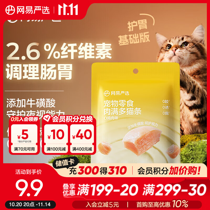 网易严选肉满多猫条 猫零食宠物湿粮成猫幼猫通用营养好肉零食 鸡肉口味 10g*6袋