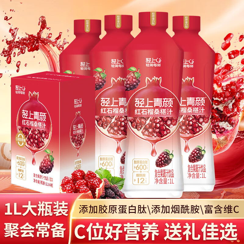 轻上【年货礼盒】轻上西梅多多精选发酵酸奶饮品营养牛奶学生早餐奶 红石榴桑葚汁1L*4瓶