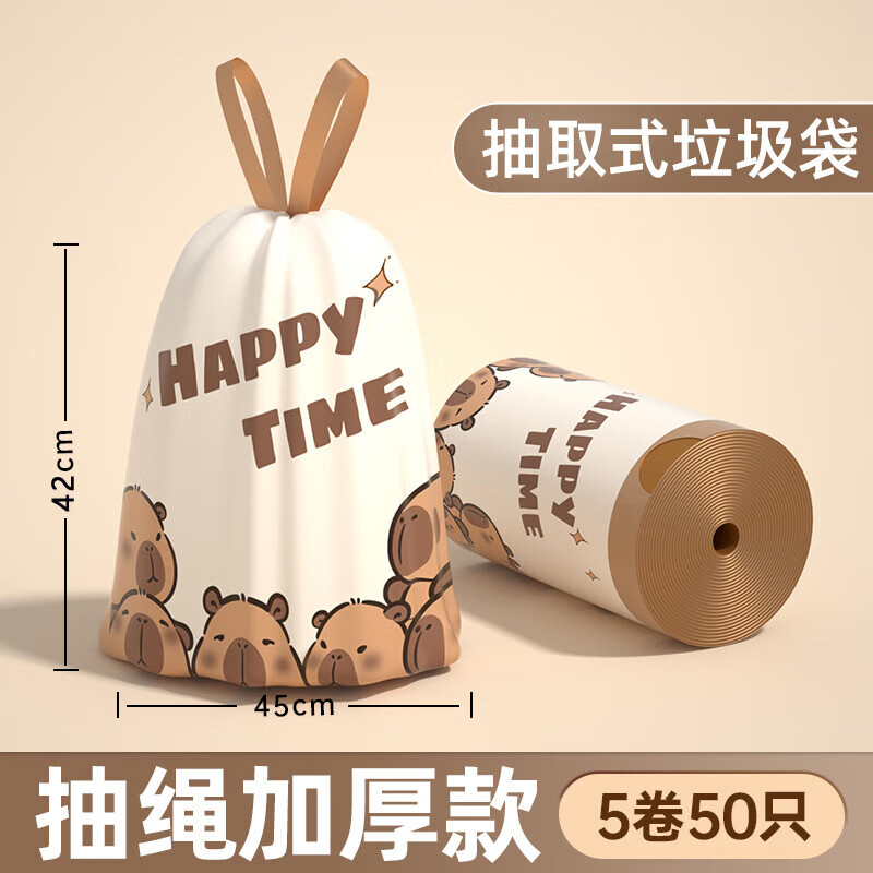 【好物优选】家用抽绳垃圾袋手提式抽绳垃圾袋厨房清洁一次性塑料 5卷50只