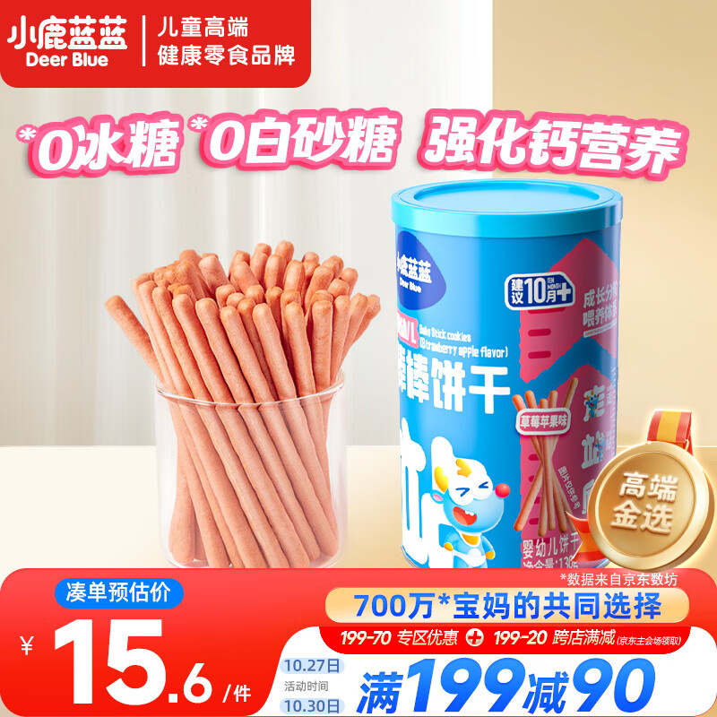 小鹿蓝蓝婴幼儿炭烧棒饼干草莓苹果味 宝宝儿童零食磨牙饼干130g