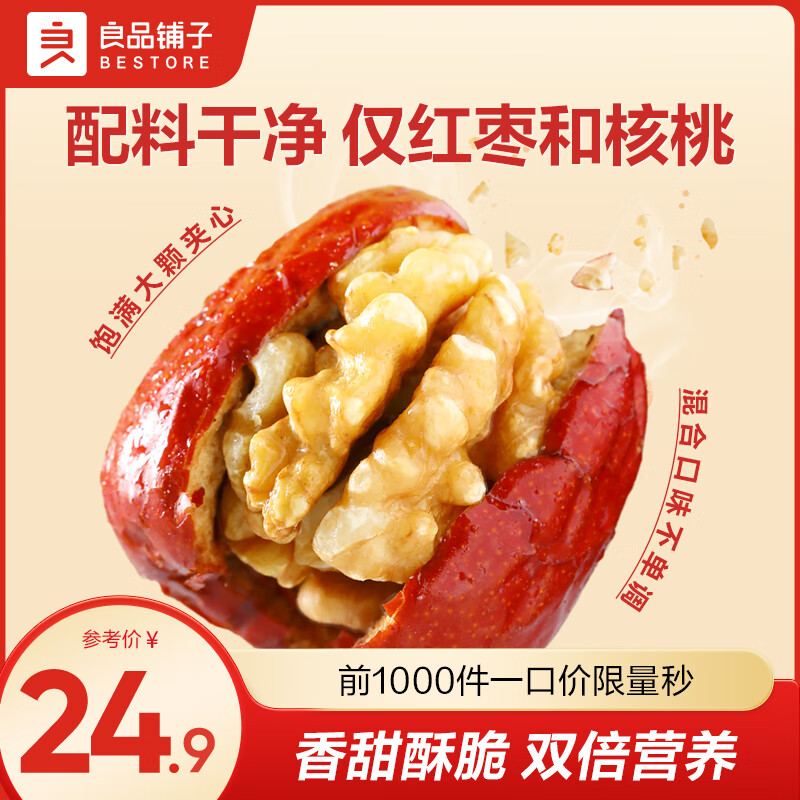 良品铺子枣夹核桃枣仁派枣类休闲零食蜜饯果干果脯 休闲零食 【约100包】枣夹核桃500g*1袋 -