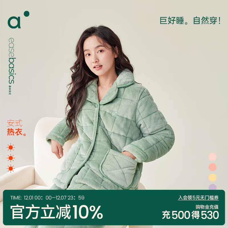 安之伴冬季情侣睡衣【三层珊瑚绒夹棉加厚 保暖防静电】休闲家居服套装 绿松石兰(珊瑚绒锁温超柔软) XL