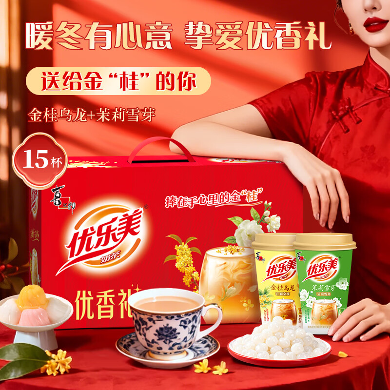 优乐美奶茶礼盒 杯箱装经典礼盒整箱装 速溶零食品冬季暖饮结婚伴手礼物 【新口味-东方茶香礼盒】2口味-15杯