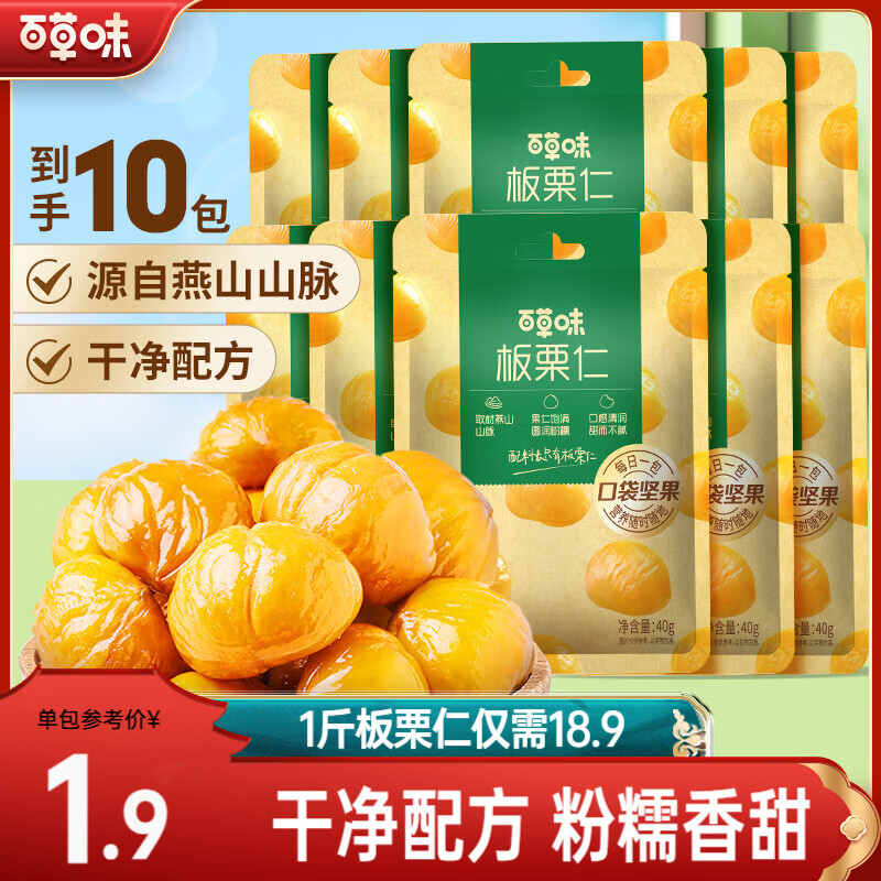 百草味 板栗仁500g 坚果炒货板栗即食栗子办公室休闲健康零食 板栗仁500g(50g*10包)