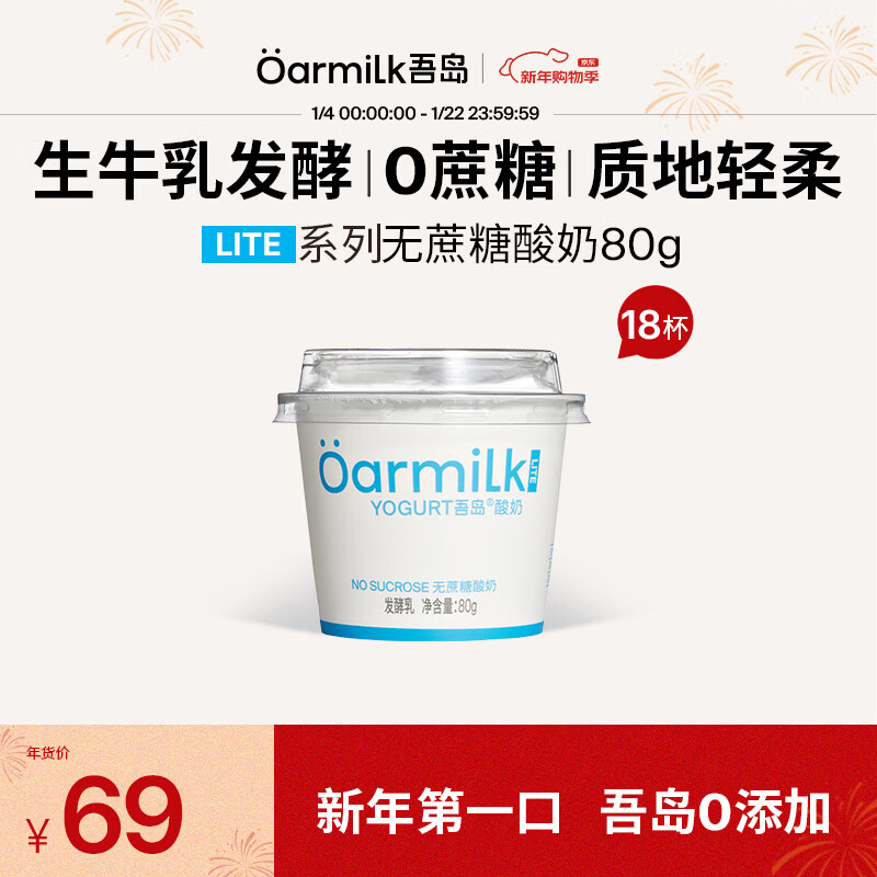 OarmiLk吾岛酸奶0蔗糖低糖多口味6种有益菌生牛乳发酵低温酸奶早餐代餐 无蔗糖酸奶80g(lite系列) 18杯