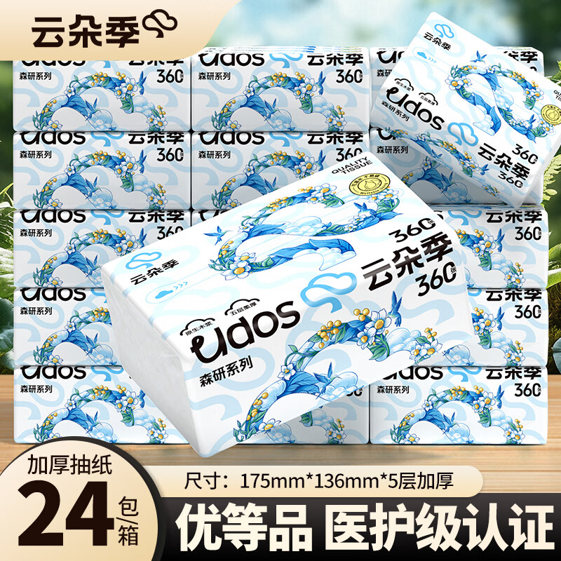 云朵季医护级抽纸5层加厚M码大尺寸纸巾卫生纸家用餐巾纸优等品面巾纸 5层 360张*24包