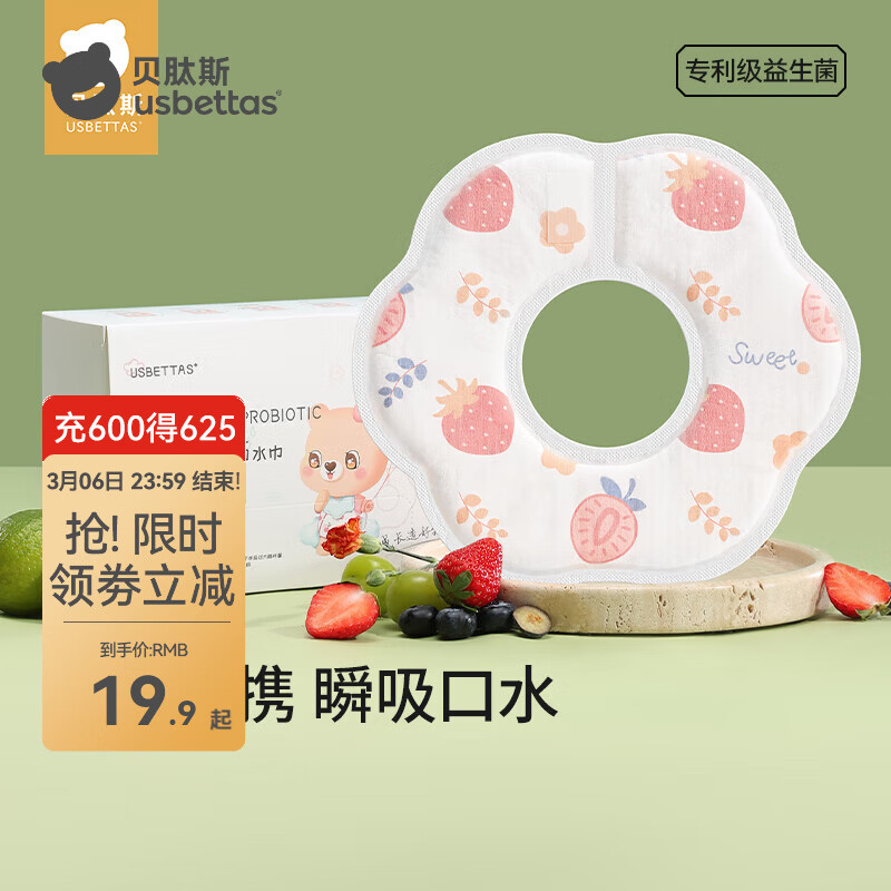 贝肽斯一次性口水巾婴儿宝宝围嘴新生儿童防水围兜防吐奶垫巾春夏纱布 【升级益生菌 独立装】草莓20片 M码
