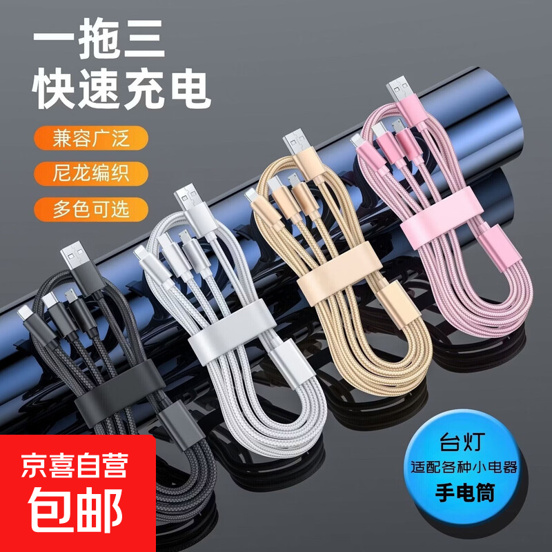 【拍2单更划算】三合一尼龙充电线灯具配件小台灯手电筒氛围夜灯 尼龙线1米一拖三 【1条】