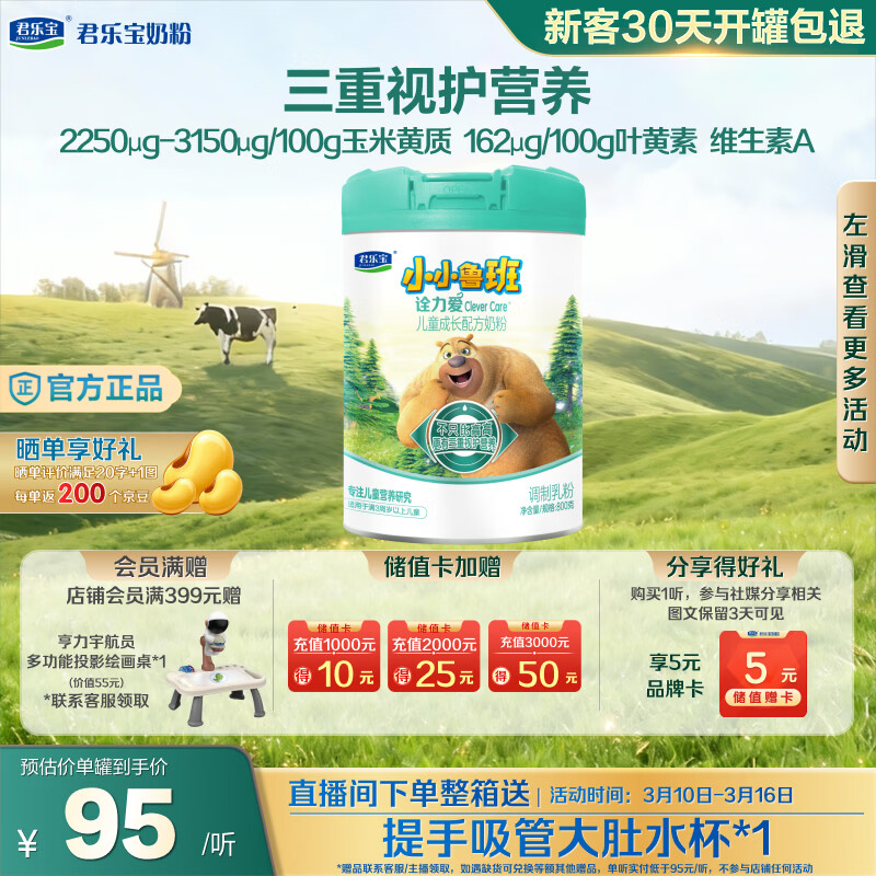君乐宝(JUNLEBAO)小小鲁班儿童配方奶粉4段关注脑动力800g 添加PS+DHA