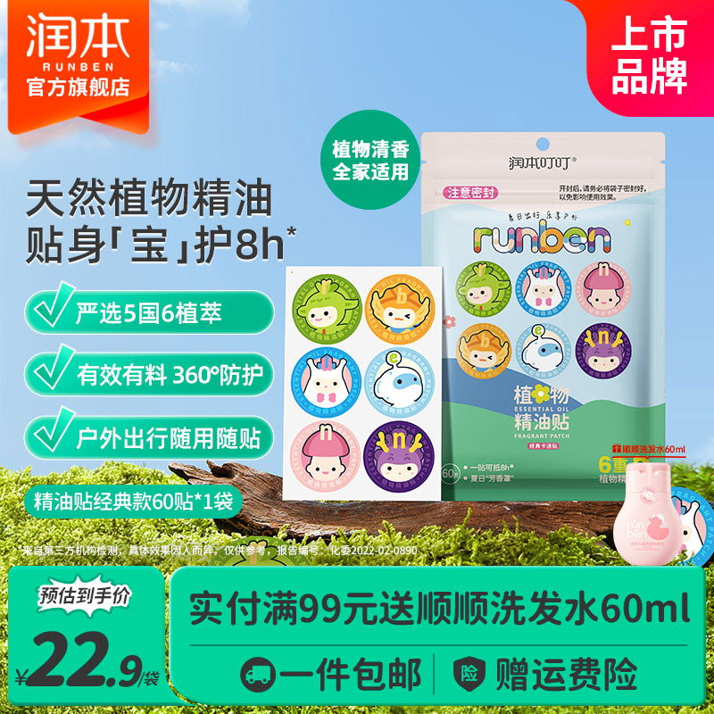 润本叮叮植物精油贴婴儿童专用卡通防护贴成人户外宝宝随身贴 【法国进口原料】经典卡通款 60贴 1袋