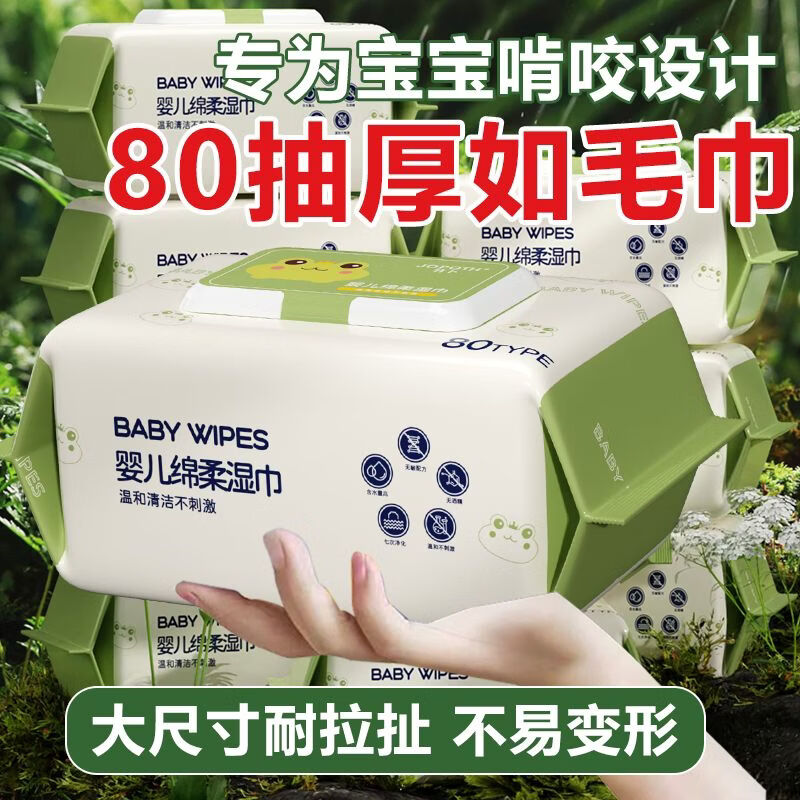【青蛙】婴儿湿巾大包带盖手口屁专用加厚湿纸巾儿童家用实惠装 80抽加大加厚升级款 2包