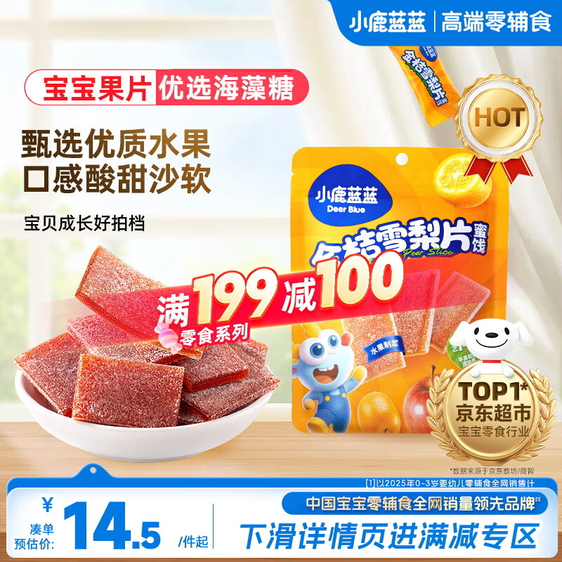 小鹿蓝蓝【0添加蔗糖】金桔雪梨片果肉片水果条宝宝儿童零食独立包装54g