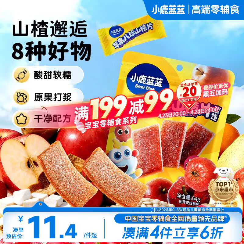 小鹿蓝蓝【0添加蔗糖】苹果八珍山楂片果片山楂条宝宝儿童零食独立包装54g
