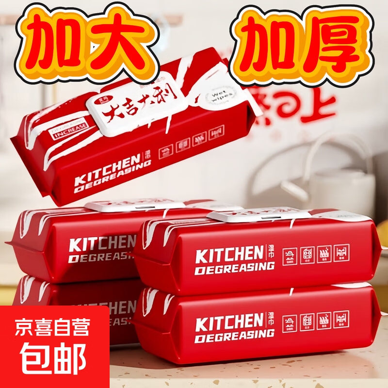 节庆用品过节大吉大利清洁湿巾超大加厚专用强力去污清洁 加大加厚40抽(165X160mm) 2包