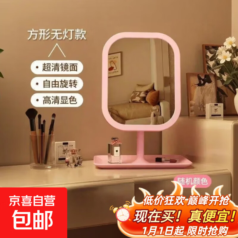 发光led智能化妆镜带灯女生卧室梳妆台梳妆镜学生宿舍桌面补光镜 无灯款随机颜色