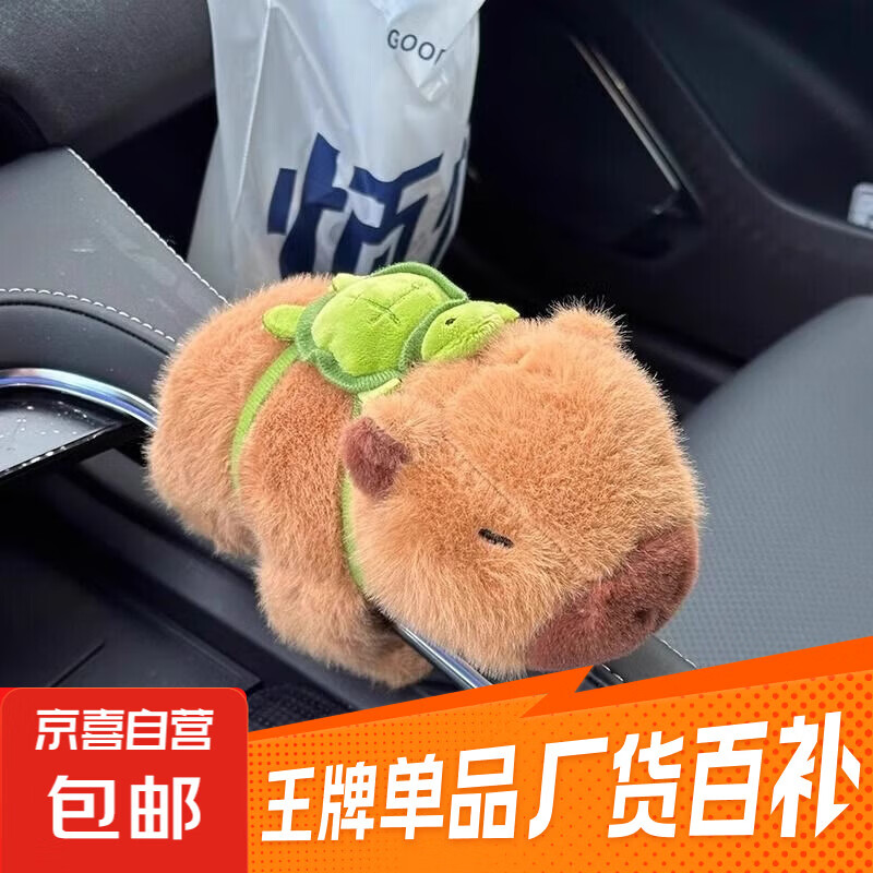 卡皮巴拉啪啪圈车载汽车内装饰水豚安全带装饰玩偶中控台摆件公仔 棕色背小乌龟卡皮巴拉啪啪圈 展开22厘米