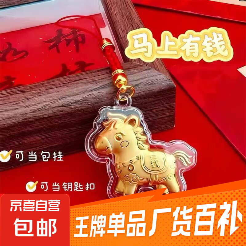 2026马年新品马上有钱小马挂绳钥匙扣卡通生肖手机链挂饰礼品 迷你马上有钱 3.8*4cm(不含金)1个