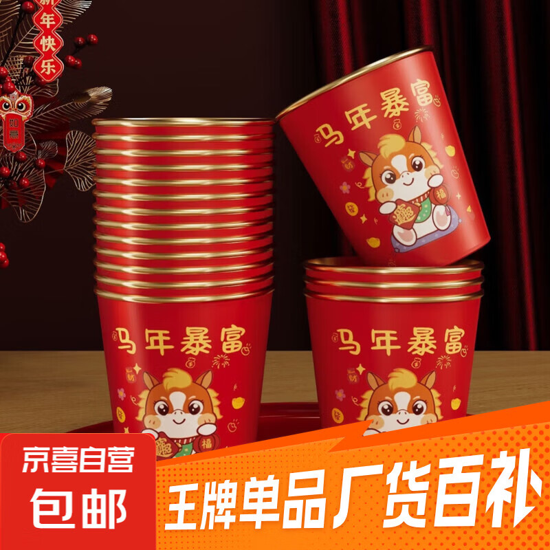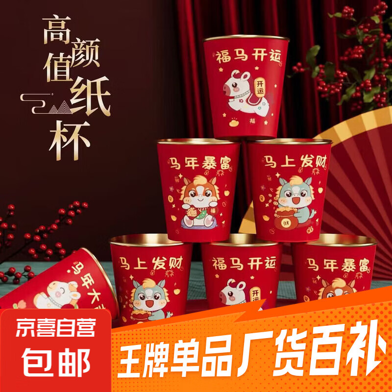 2026马年新款金箔纸杯一次性杯子新年春节耐高温加厚防烫家用 50个