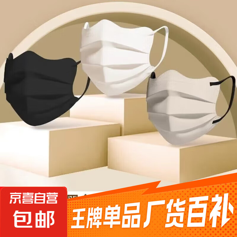 蝶形口罩三层一次性透气高颜值v型显脸小大脸用不勒耳独立装 【三色组合】黑+白+卡其 30片【独立包装】