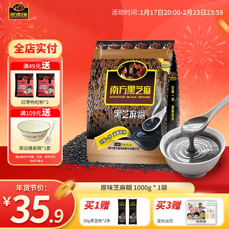 南方黑芝麻经典黑芝麻糊营养代餐早餐独立小袋速食 原味芝麻糊 1000g*1袋