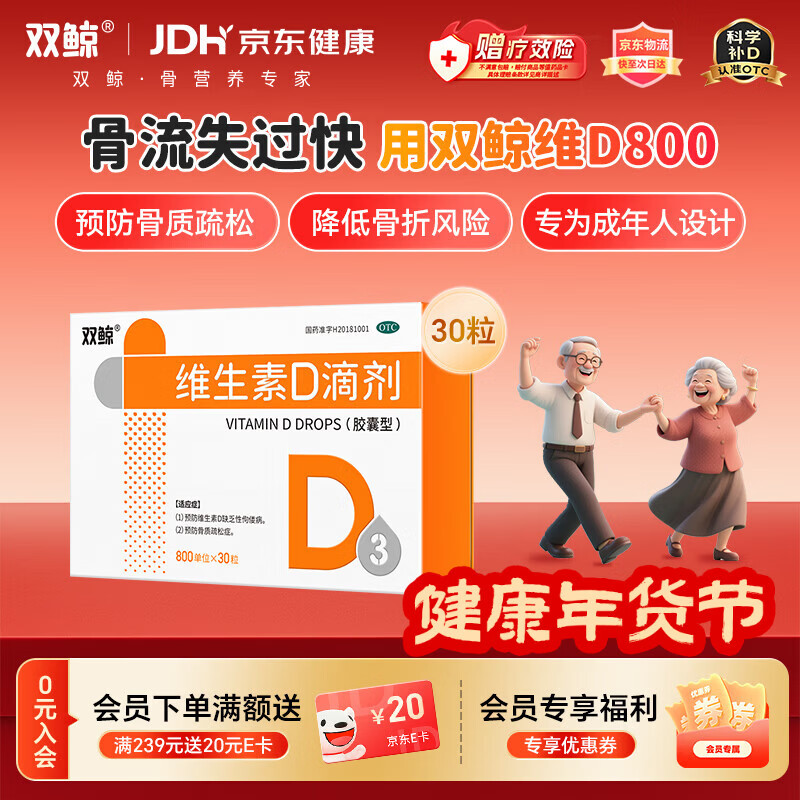 双鲸 维生素D滴剂 800单位*30粒 维生素d成人 维生素d中老年预防骨质疏松症 成人补充vd促钙吸收补钙d3