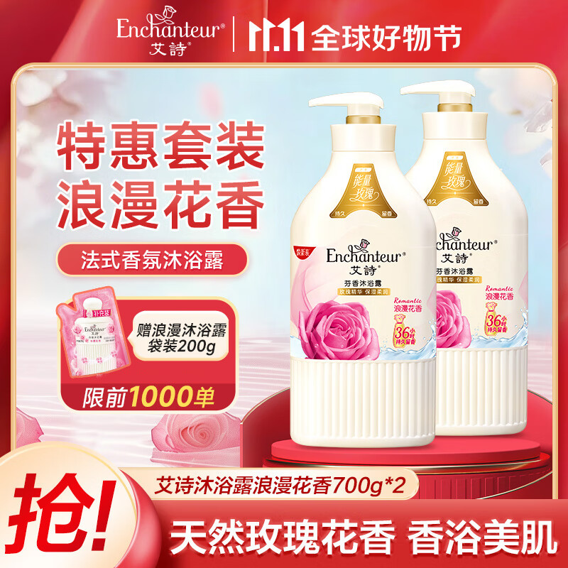 艾诗(Enchanteur)浪漫花香沐浴露 玫瑰补水保湿香水沐浴乳女 700ml*2超值套装