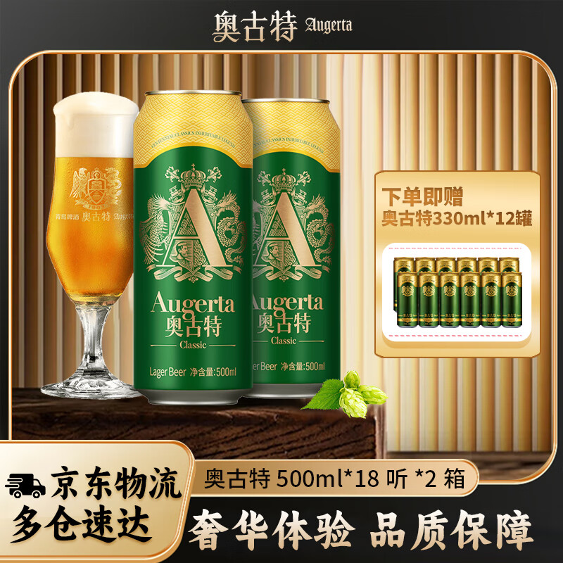 奥古特(Augerta)青啤奥古特经典啤酒原麦汁浓度12°P 500mL 18罐 2箱装(到手共36罐)