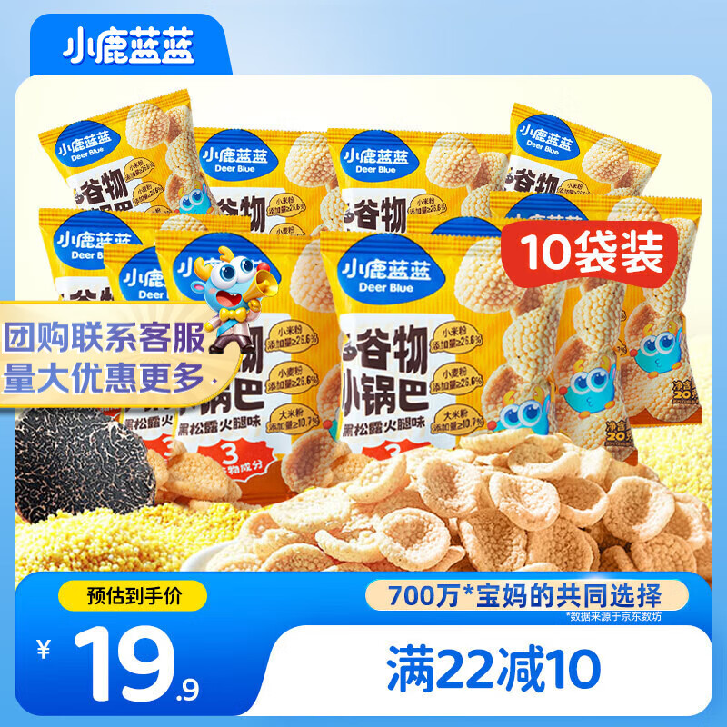 小鹿蓝蓝多谷物小锅巴200g黑松露火腿味*10袋装宝宝零食儿童薯片