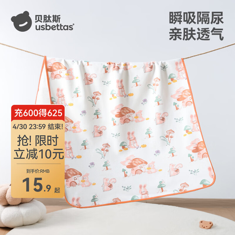 贝肽斯婴儿隔尿垫宝宝防水可洗纯棉透气床单月经姨妈垫生理期床垫 蘑菇屋-5A级抗菌 30x45cm