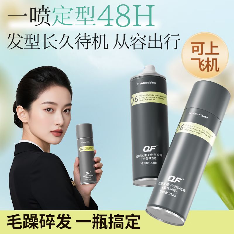 OF无味定型喷雾旅行装飞机空姐同款高颅顶蓬松抚平毛躁碎发打理旅游 无香发胶99ml【便携 1瓶装】