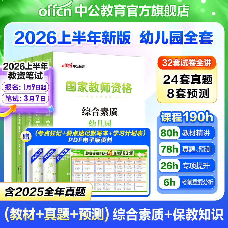 中公教育教资2026幼儿园幼师资格证考试用书教资考试资料2026上半年教师资格历年真题试卷教材:综合素质+保教知识与能力6本 热销 幼儿园教资【教材+真题+模拟】 6本