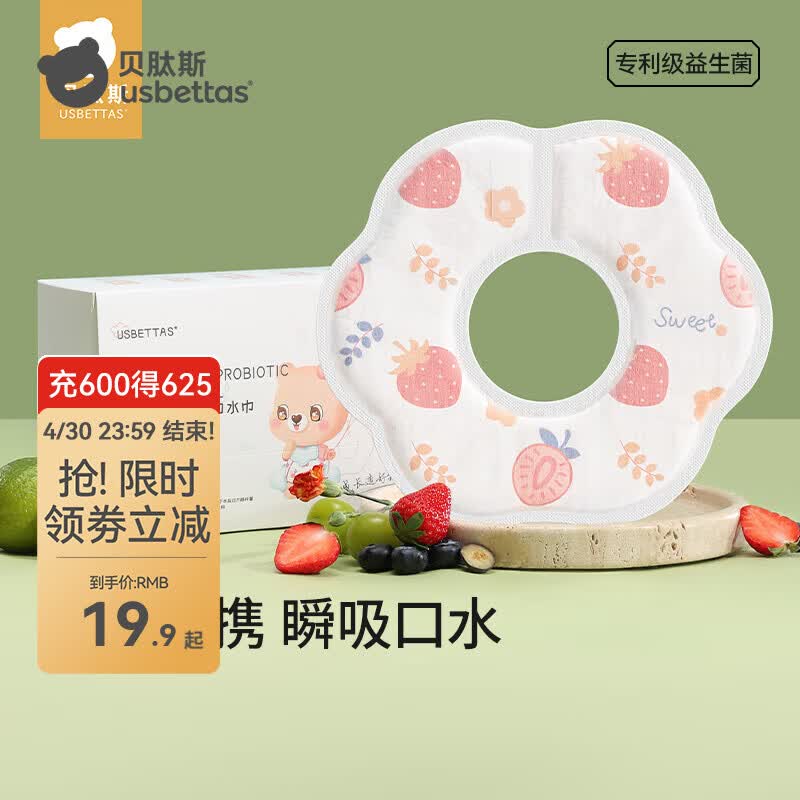 贝肽斯婴儿一次性口水巾新生儿夏季防水围兜宝宝防吐奶垫巾围嘴 【升级益生菌 独立装】草莓20片 M