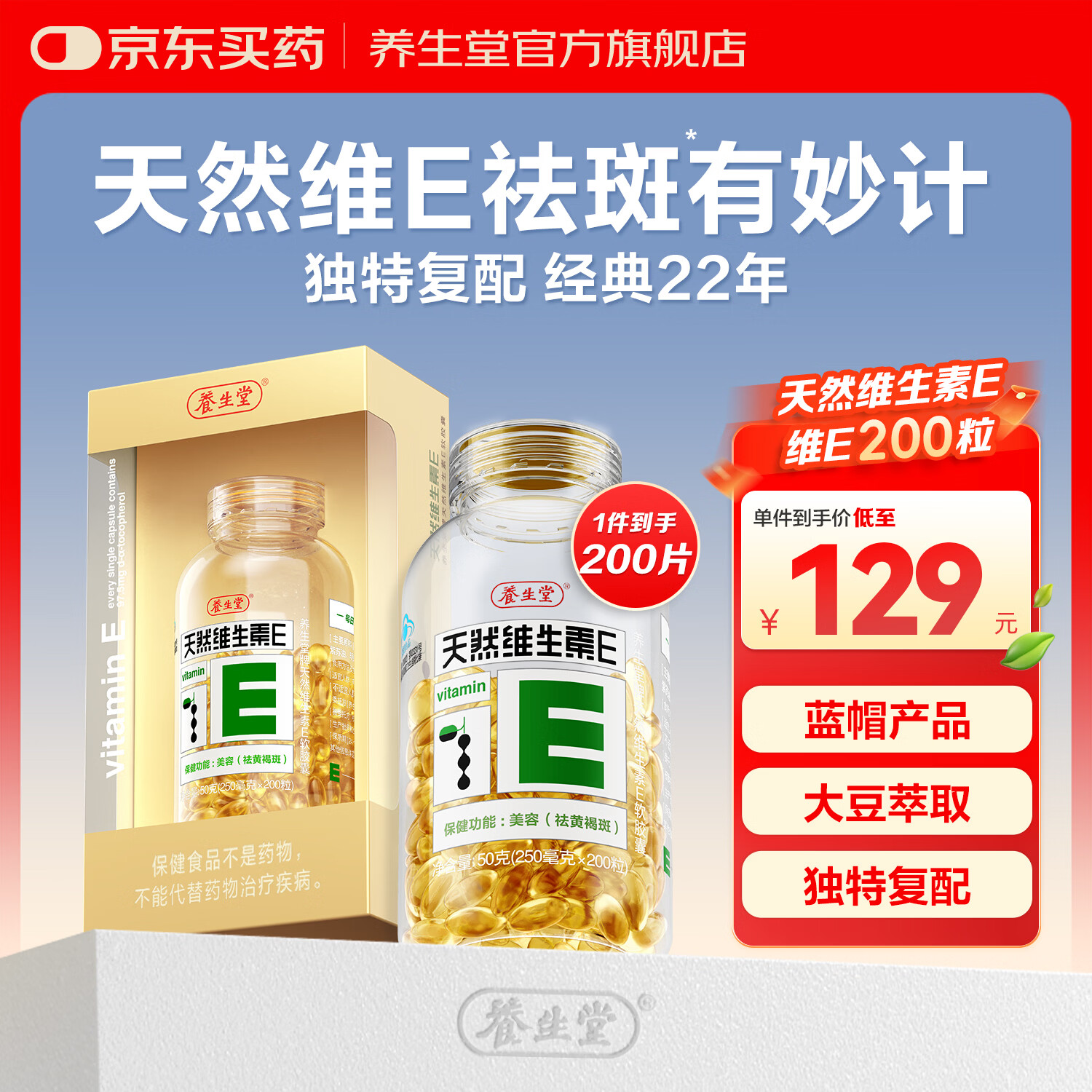 养生堂天然维生素e软胶囊女性美容祛黄褐斑VE高含量内服外用补充ve搭vc 200粒*1瓶