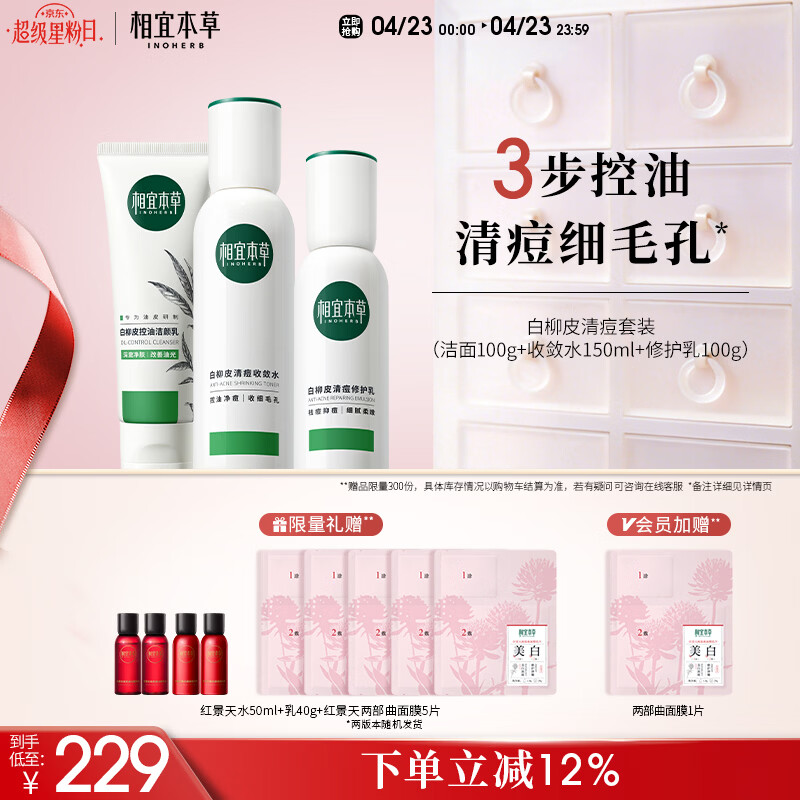 相宜本草白柳皮清痘修护套装洁水乳祛痘护肤品男女士护肤品