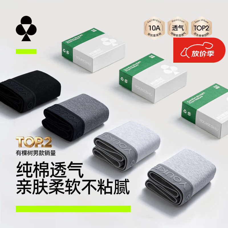 有棵树男士内裤男纯棉10A抑菌档清爽透气宽松舒适亲肤四角平角裤衩内裤
