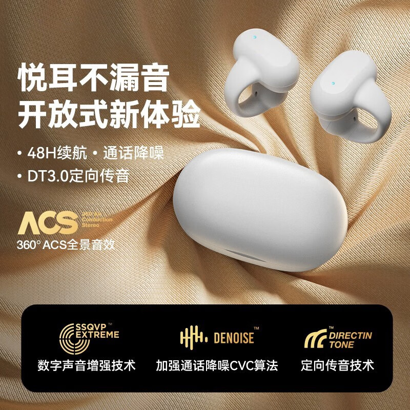 金运【2026年新升级】蓝牙耳机真无线不入耳开放式耳夹式非骨传导运动跑步通话降噪i113 象牙白丨脉冲定向传音丨臻享版