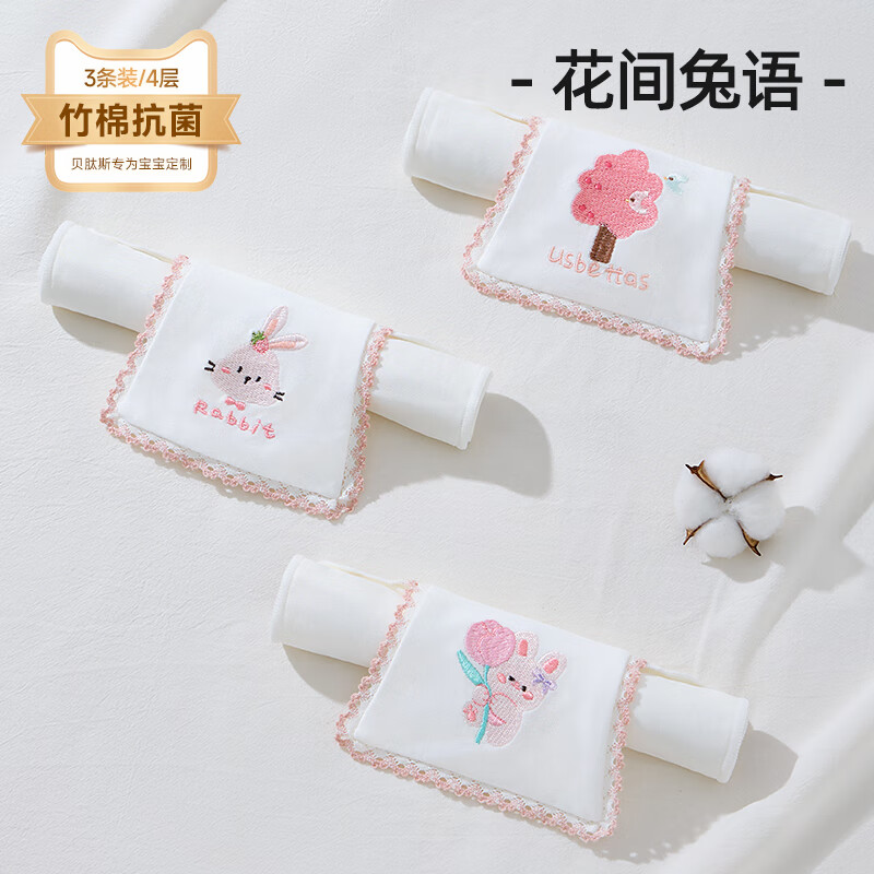 贝肽斯隔汗巾儿童吸汗巾纯棉垫背巾新生儿男女宝宝大号3条装 3条装 花间兔语 4层 【瞬吸干爽 10A抗菌】 S码【28*19cm】建议0-1岁