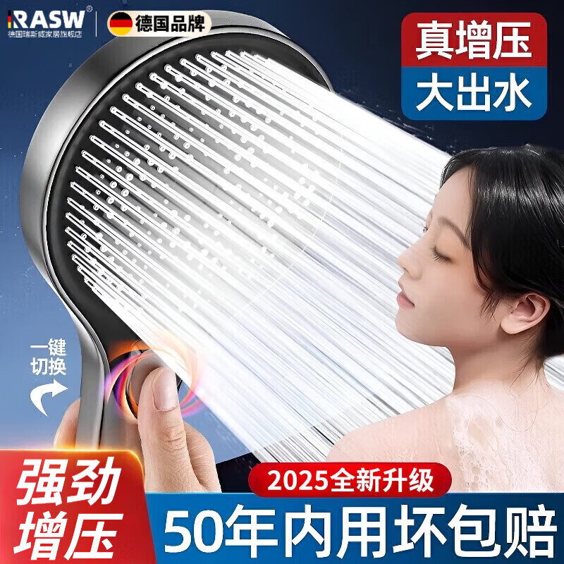 RASW德国手持增压花洒淋浴喷头套装超强高压大出水洗澡家用喷淋莲蓬头 枪灰色【增压款 】 【全网热销100w+】