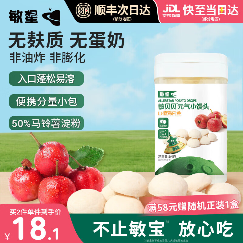 敏星无蛋奶小馒头无小麦无麸质饼干马铃薯休闲零食送敏宝婴儿童辅食谱 【无麸质】山楂鸡内金味64g