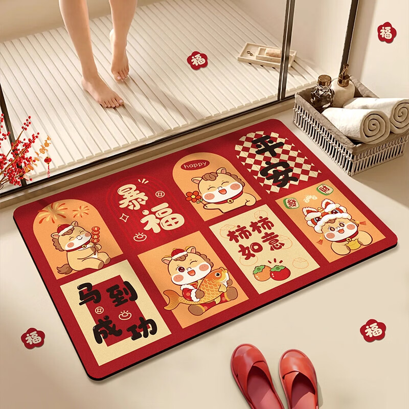 季象2026新款卫生间地垫浴室吸水防滑垫厕所门口脚垫新年红色喜庆垫子 GZN-X马年平安 40x60 cm