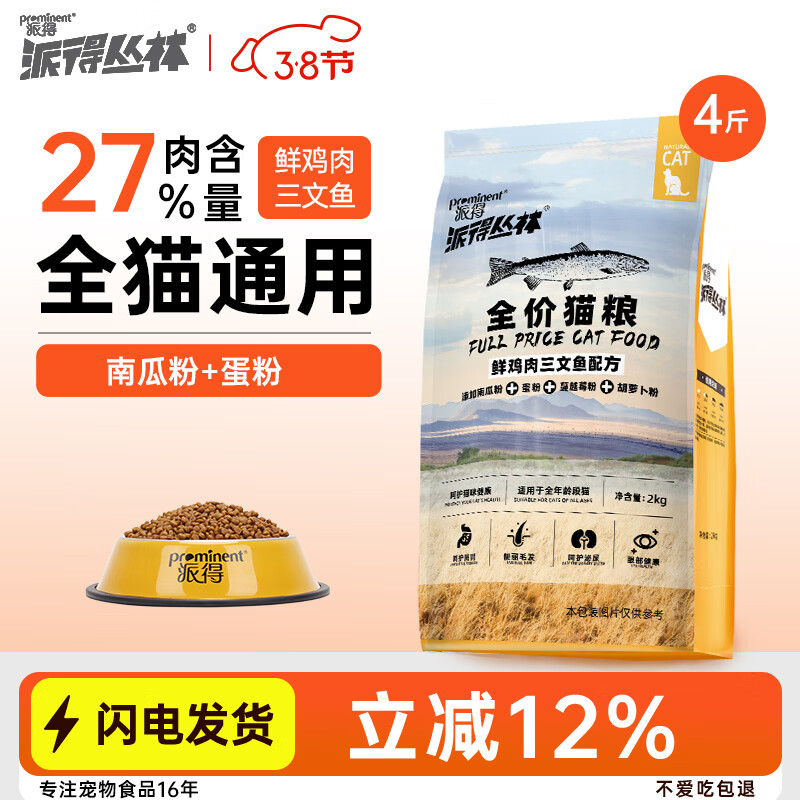 派得丛林鲜肉猫粮成猫幼猫家猫布偶英短全价鲜肉猫粮 4斤/共1袋
