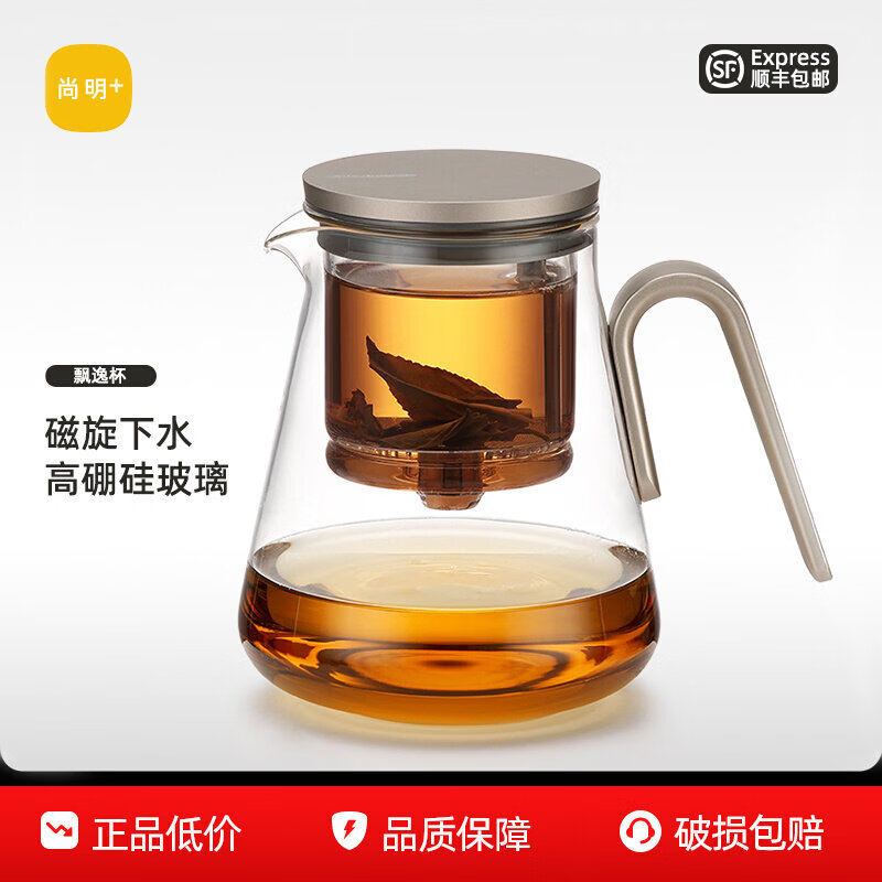 尚明(SAMADOYO)玻璃内胆飘逸杯泡茶壶茶水分离过滤冲茶具套装2025家用办公沏茶壶 枪黑色800ml
