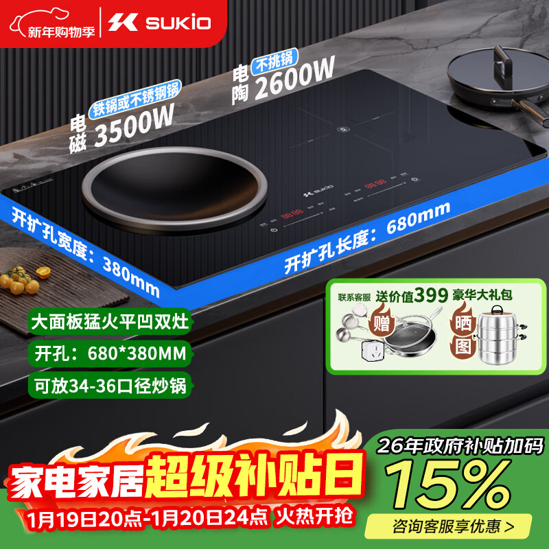 硕高嵌入式电磁炉双灶大功率家用爆炒电磁炉凹面台嵌两用电磁炉电陶炉双炉左凹右平一电一陶OG010