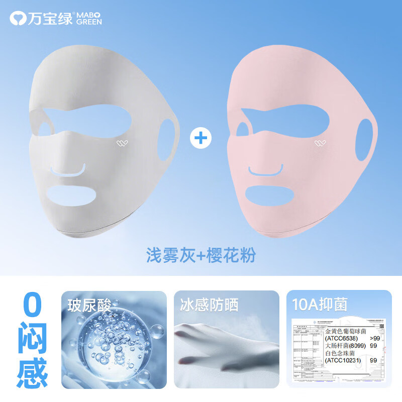 万宝绿骑行防晒面罩全脸防紫外线男夏季户外运动专用易呼吸凉感口罩冰丝 换洗装【全脸防晒】浅雾灰+樱花粉【10A抑菌】