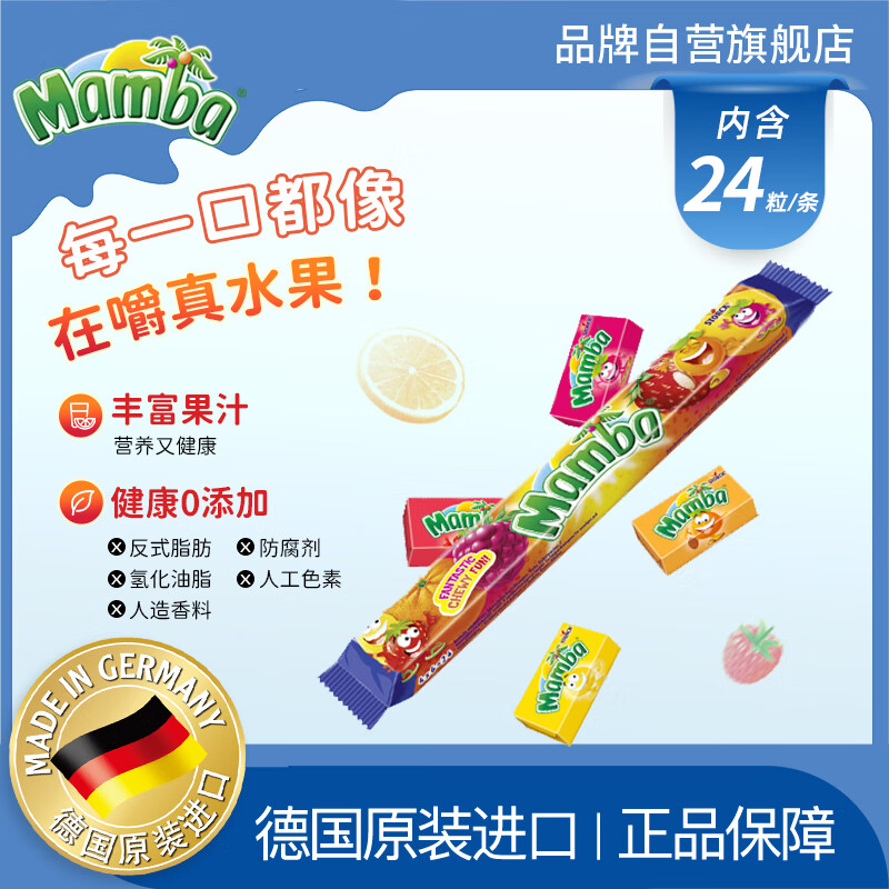 Mamba德国原装进口水果慢嚼软糖零食混合口味果糖喜糖儿童休闲零食 24粒(1条)