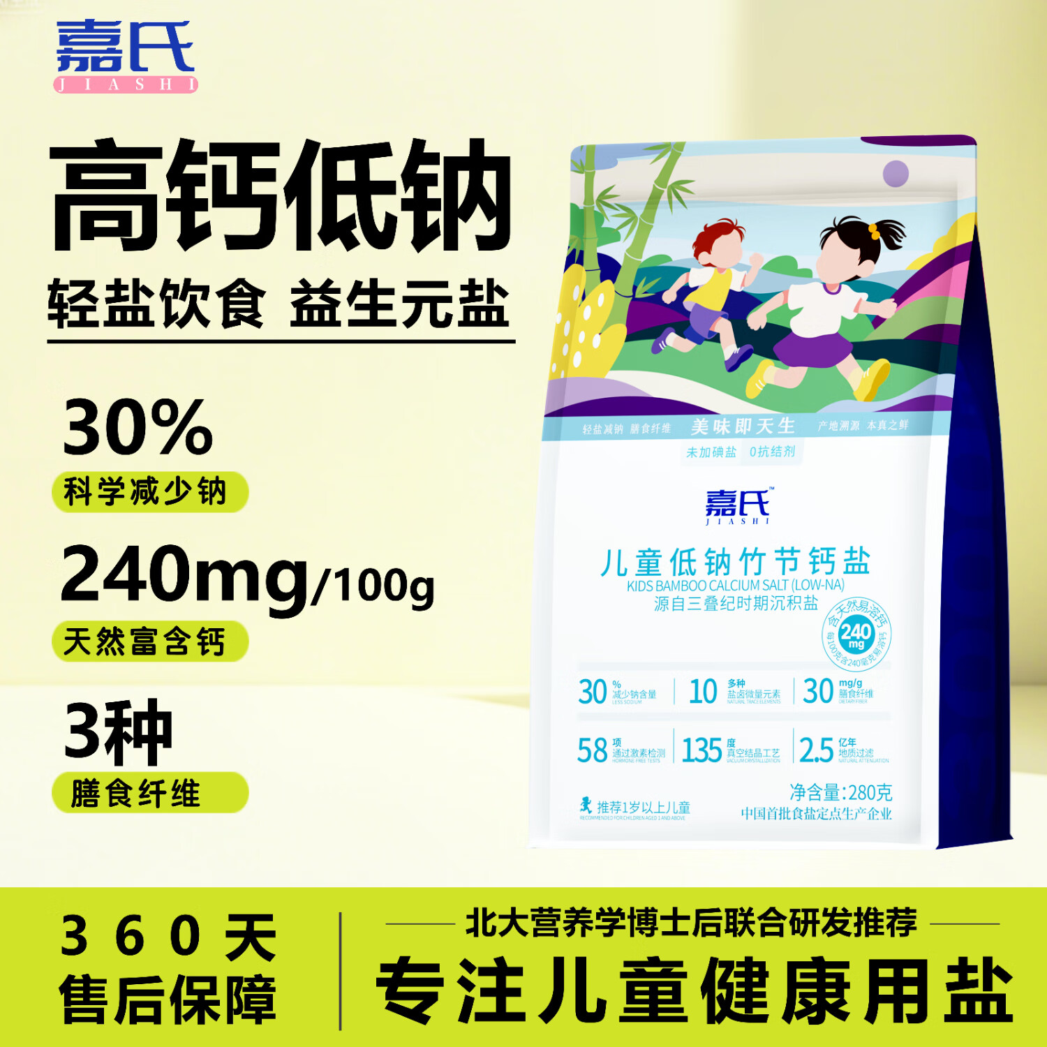 嘉氏高钙低钠铁锌儿童专用食盐辅食婴儿宝宝盐不加碘零添加抗结剂 【尝鲜款不划算】1袋*280g