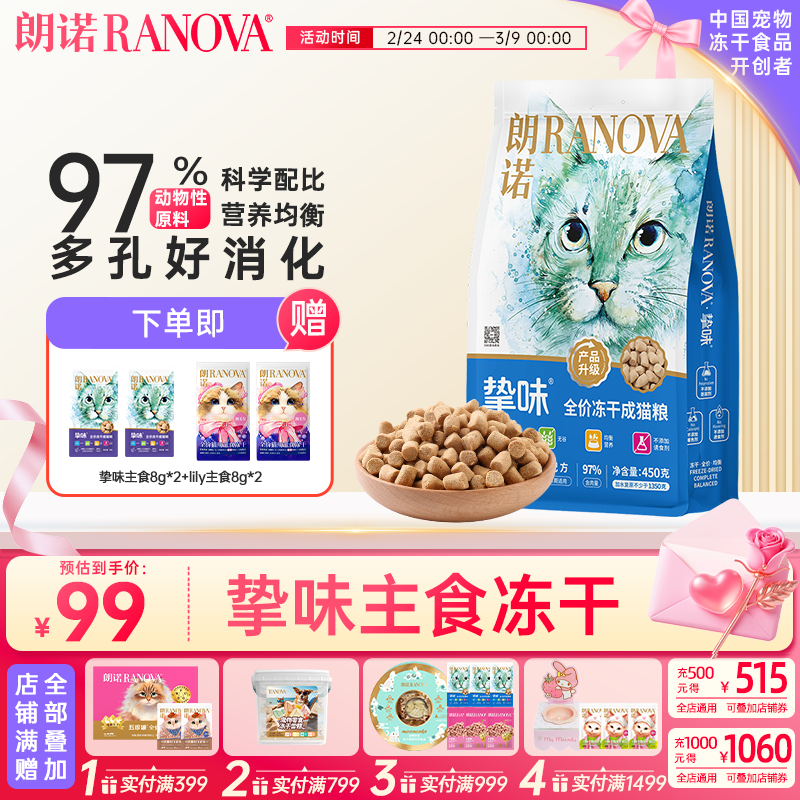 朗诺挚味主食冻干猫粮成猫幼猫孕猫哺乳猫鸡肉三文鱼猫咪全价营养主粮 鸡肉味450g 成猫