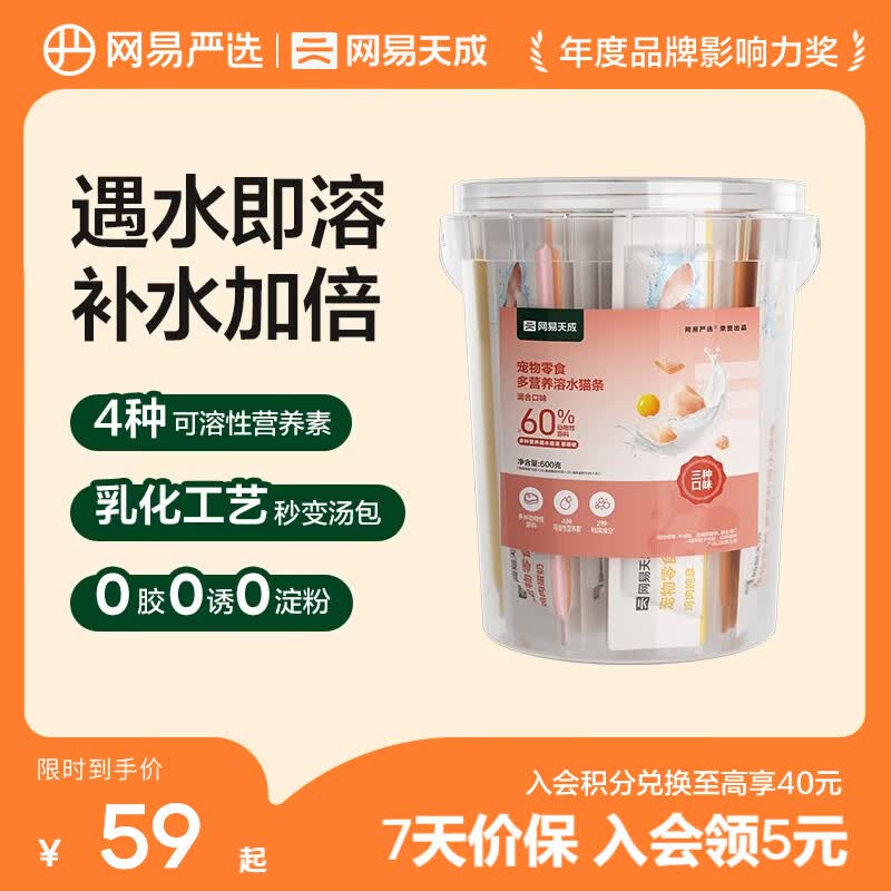 网易严选多营养速溶猫条 宠物零食营养增肥 成幼猫通用美毛猫条低敏易消化 三味混合 10g*60袋