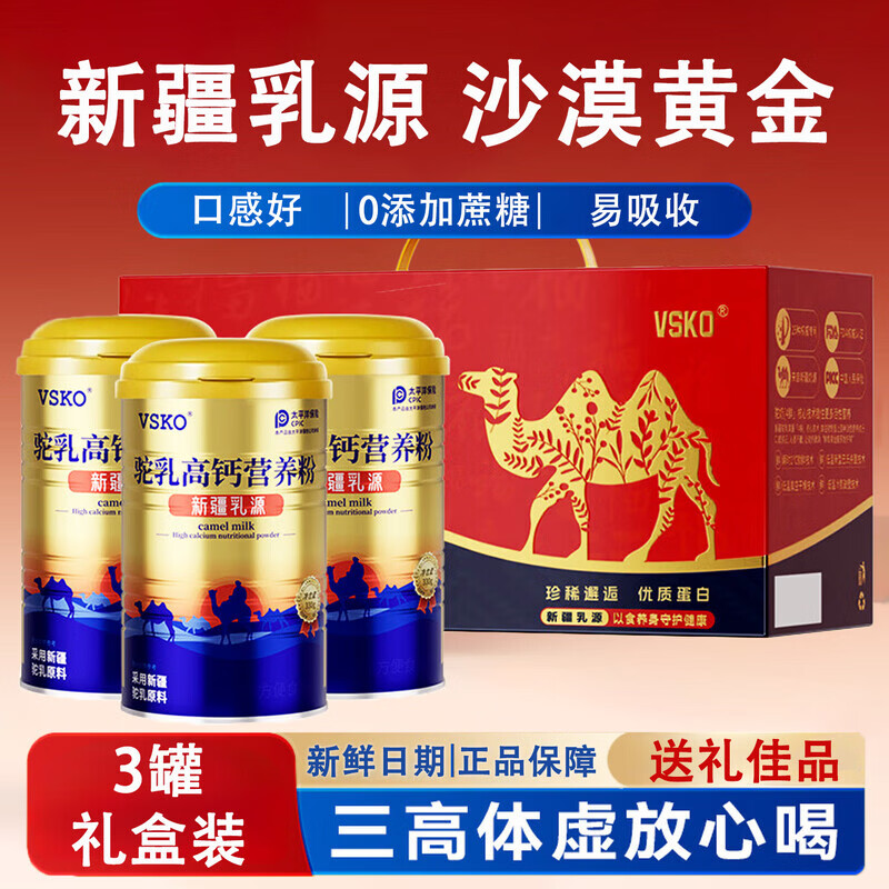 VESKYVSKO新疆乳源 驼乳高钙营养粉礼盒装营养粉高钙粉专利益生菌 【健康好礼】 330g*3罐 礼盒装